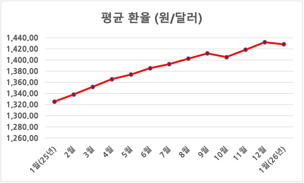 아래의 그레프에서 볼 수 있듯, 최근 1년간 원·달러 환율은 완만한 상승세를 넘어 가파른 우상향 곡선을 그리고 있다. 특히 여행 성수기를 앞둔 시점에 환율 변동성이 커지며 여행객들의 불안감을 키우고 있다.