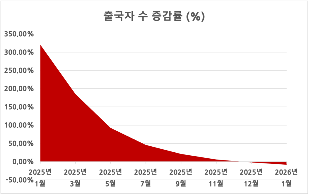 이러한 비용 압박은 실제 출국 통계에서도 여실히 드러난다. 국가통계포털(KOSIS)과 한국관광공사 데이터에 따르면, 올해 초까지 전년 대비 세 자릿수 증가율을 보이던 내국인 출국자 수는 2분기 들어 상승 폭이 현저히 둔화했다.